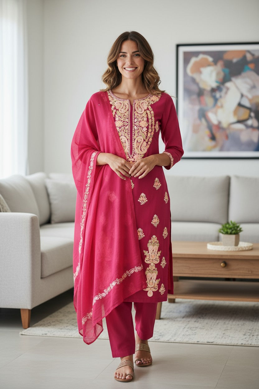 Grace in Every Thread: Cotton Suits with Kashmiri Embroidery.