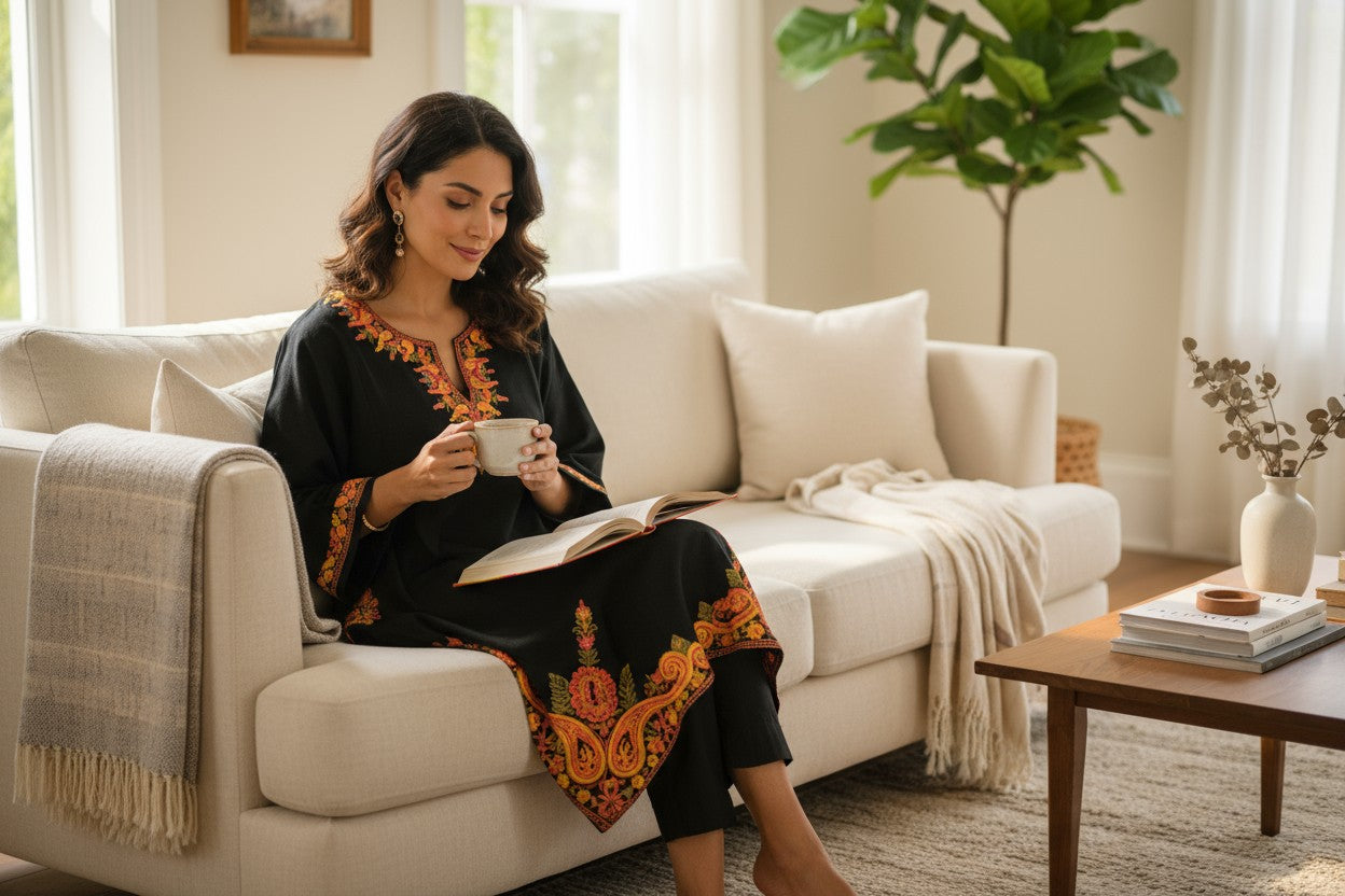 Kashmiri Woolen Pheran with Traditional Embroidery - Black