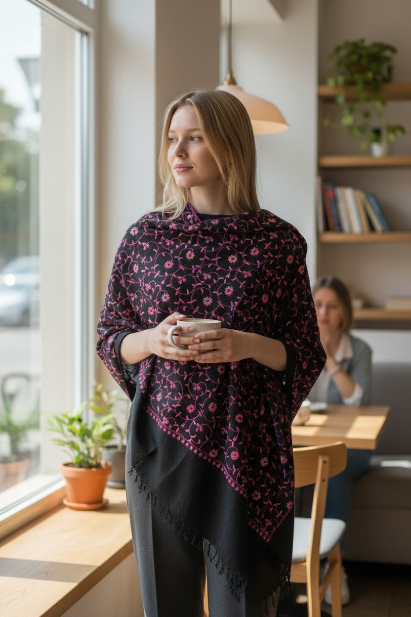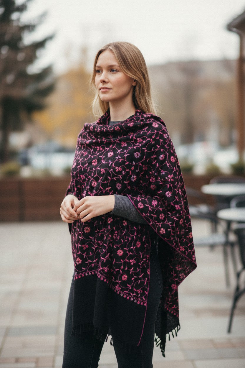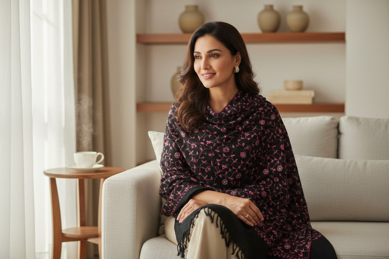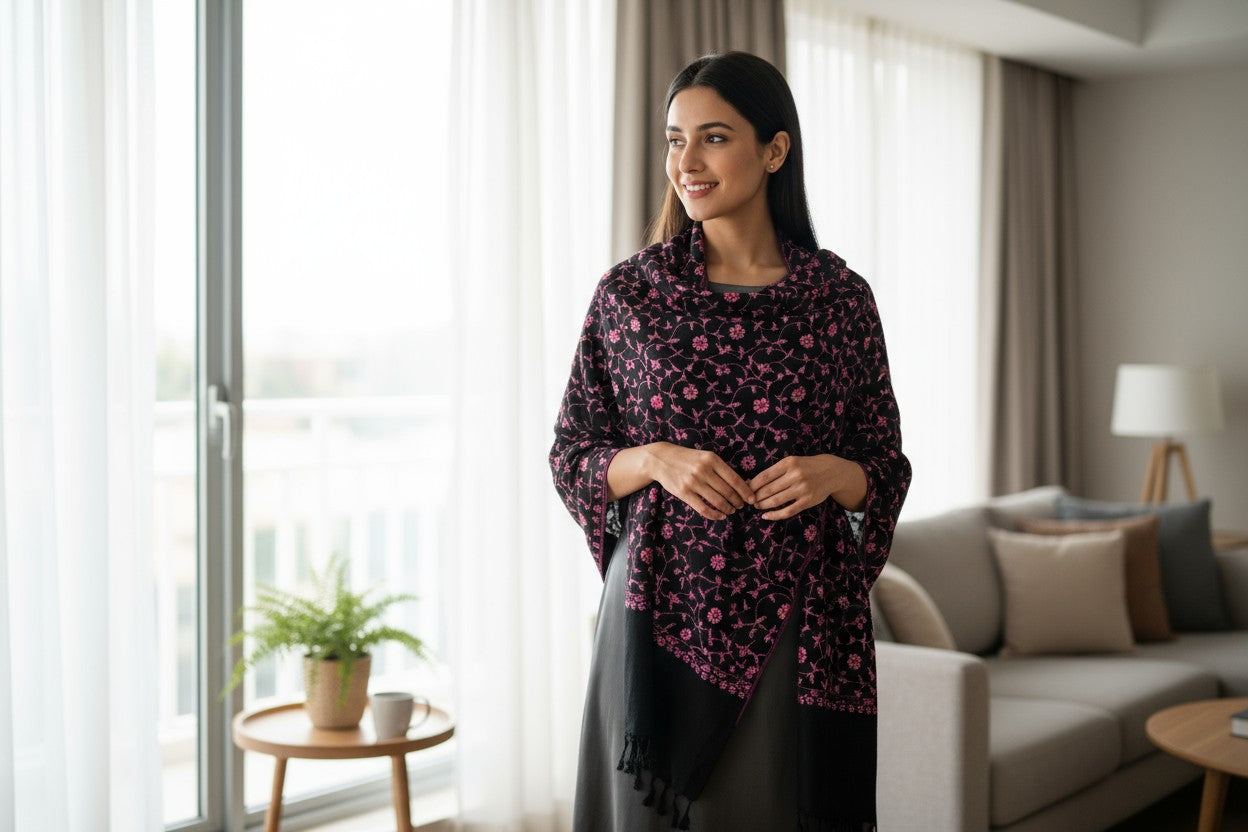Kashmiri Woolen Stole with Aari Embroidery | Elegant Winter Wrap | Traditional Ethnic Wear for Women