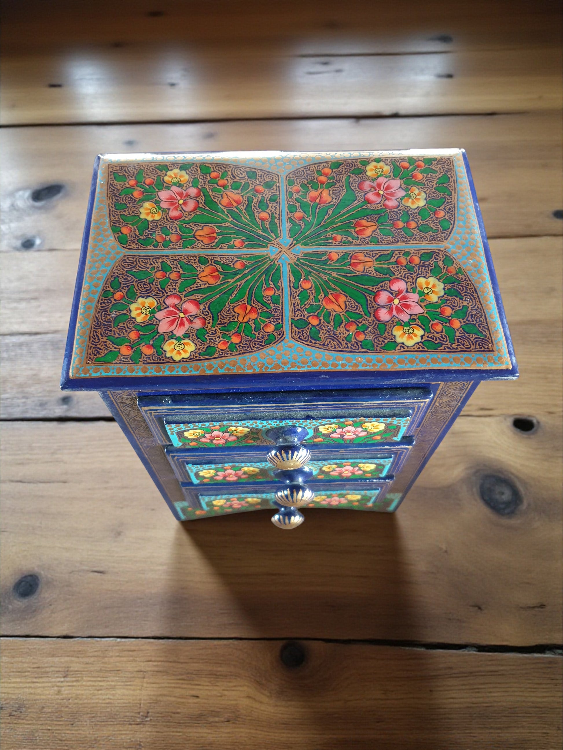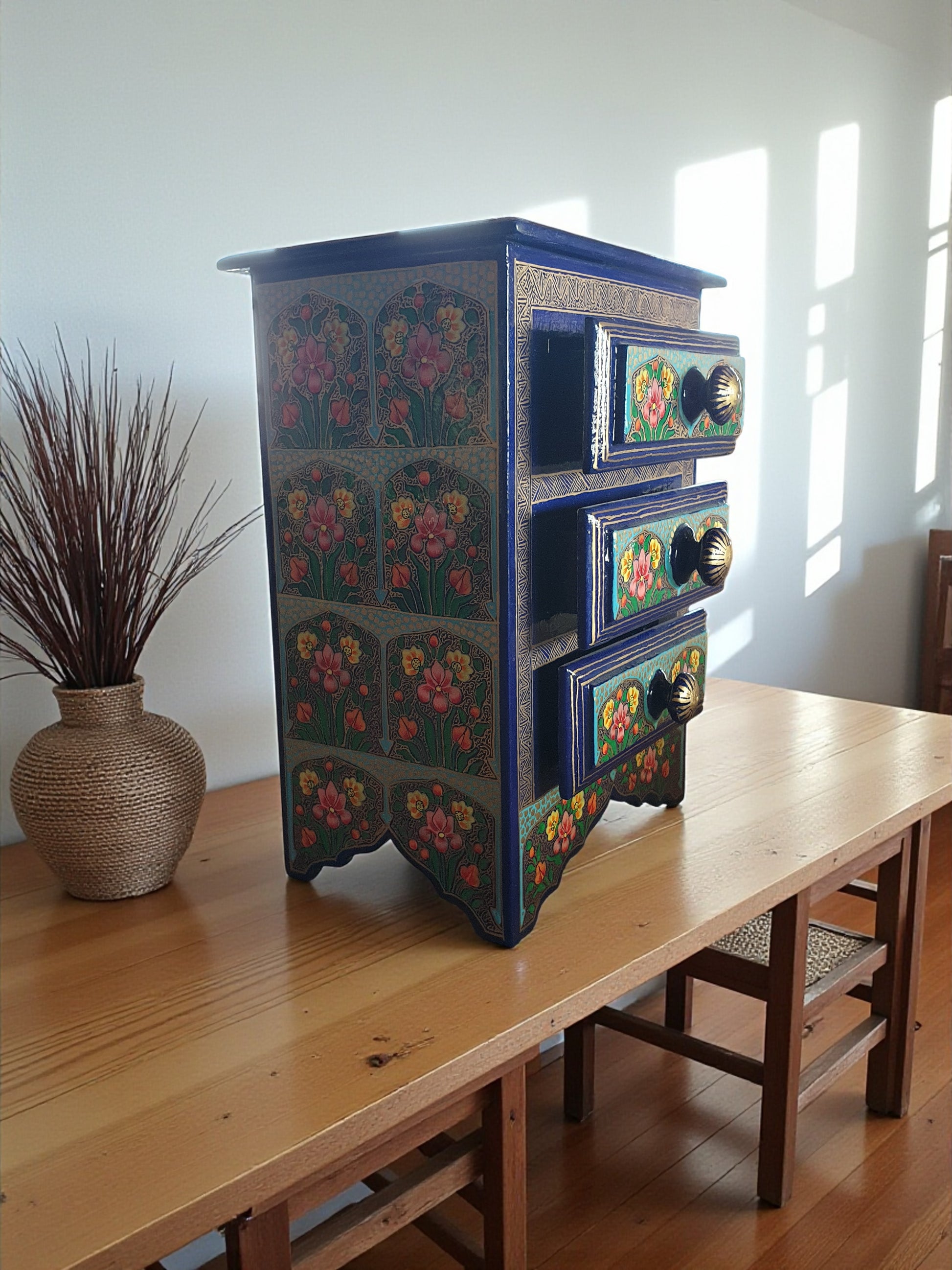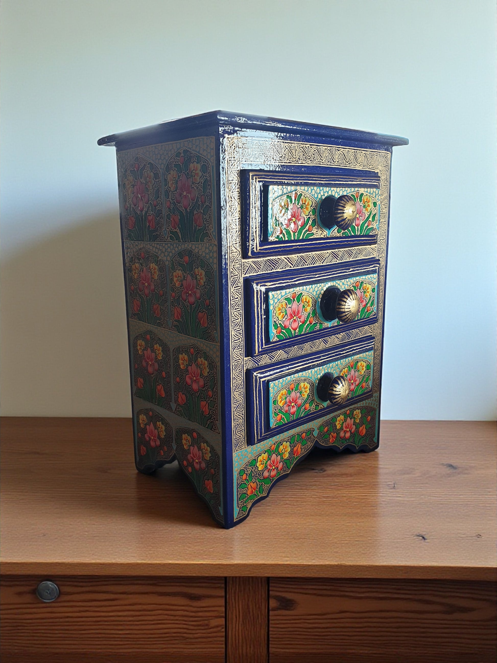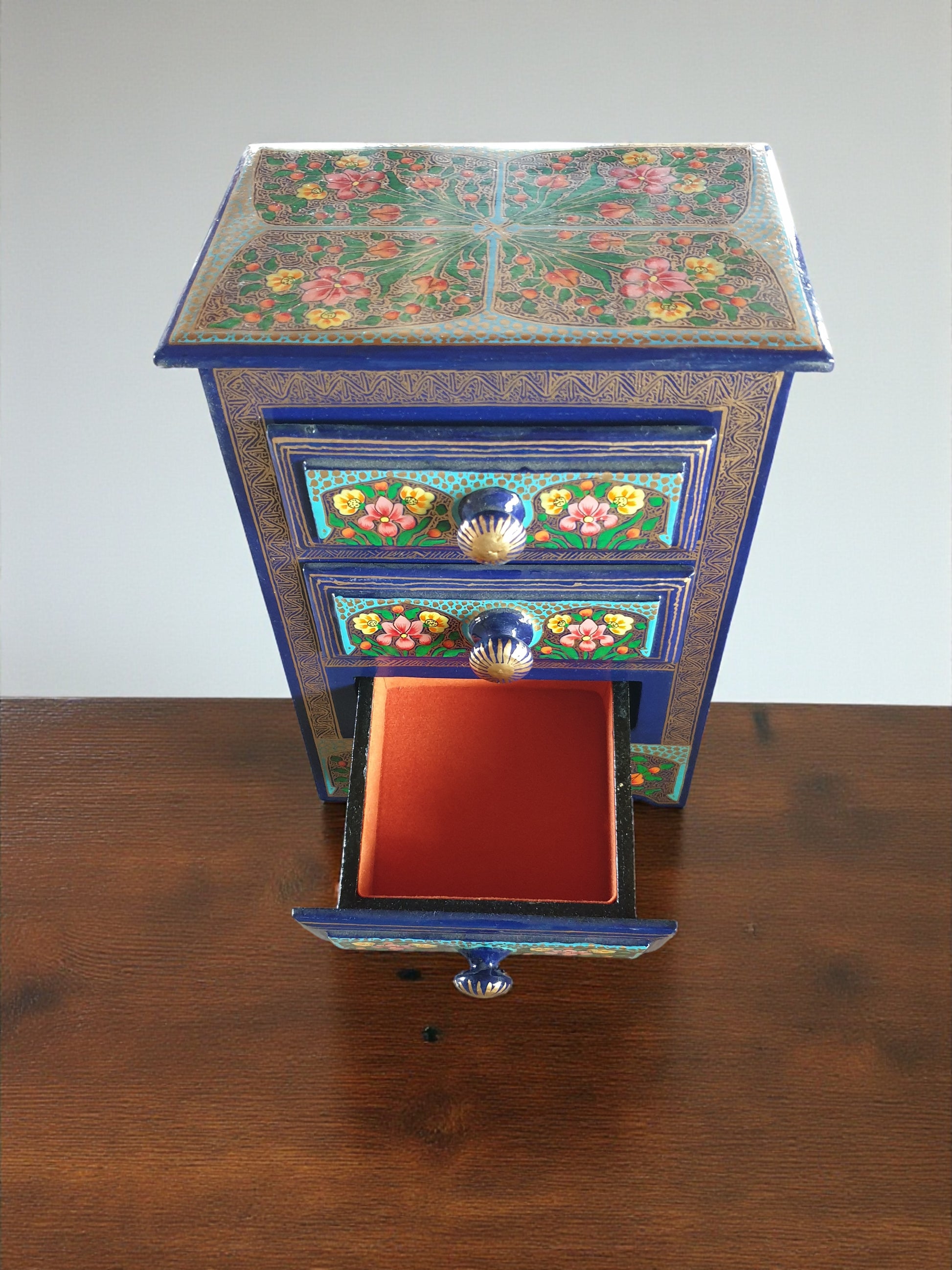 Mini Wooden Paper-Mâché Jewelry Almirah, Blue