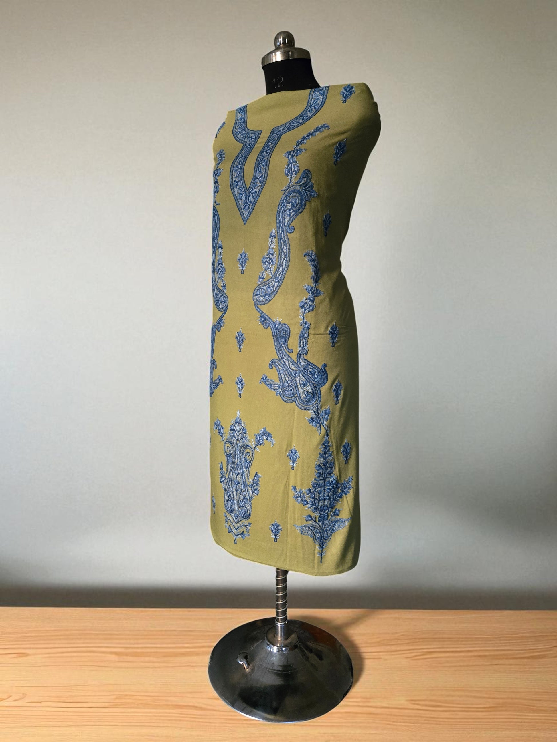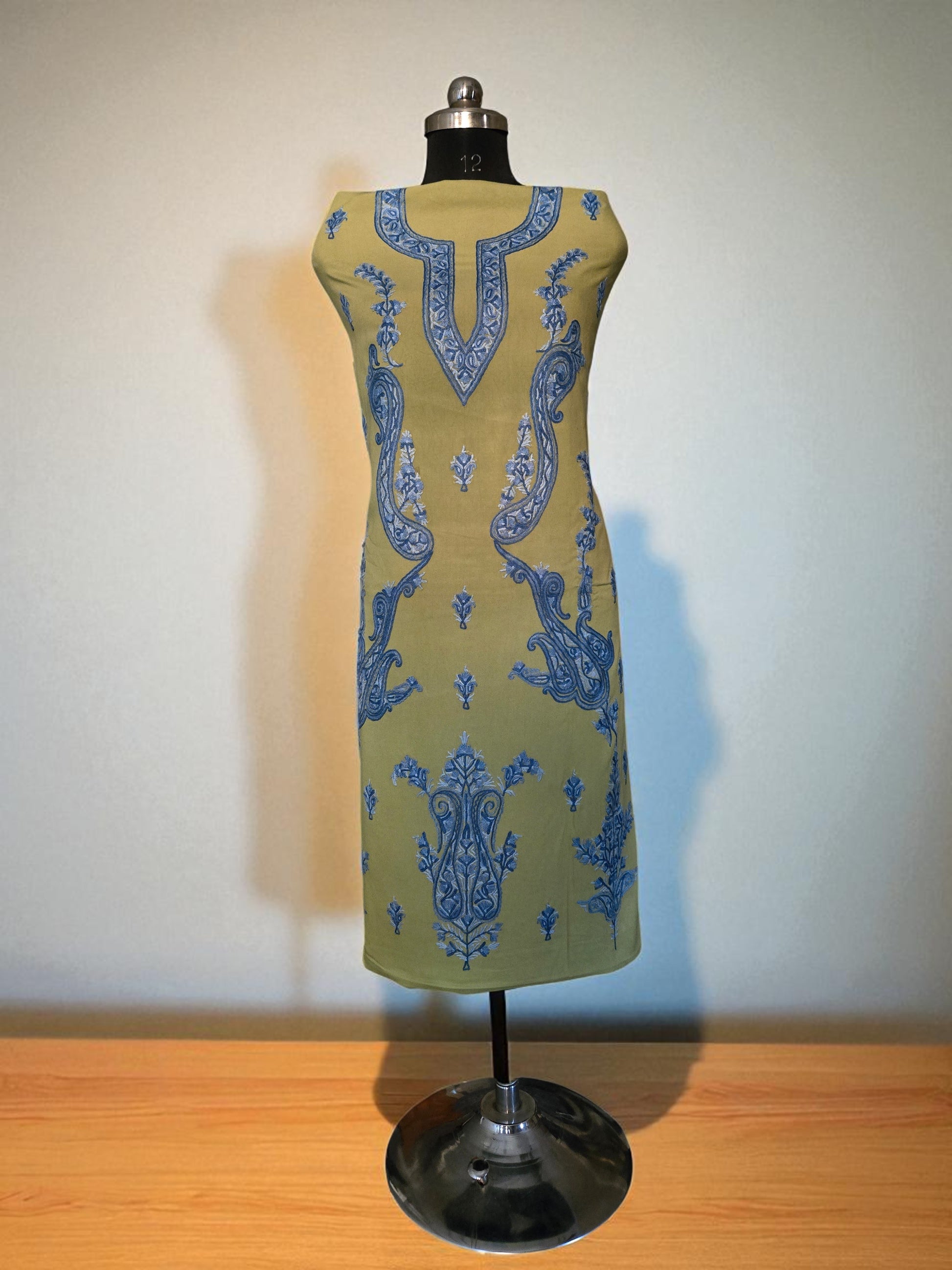 Women Cotton Suits with Hand Kashmiri Embroidery Unstitched Dress Material Salwar Suits -green