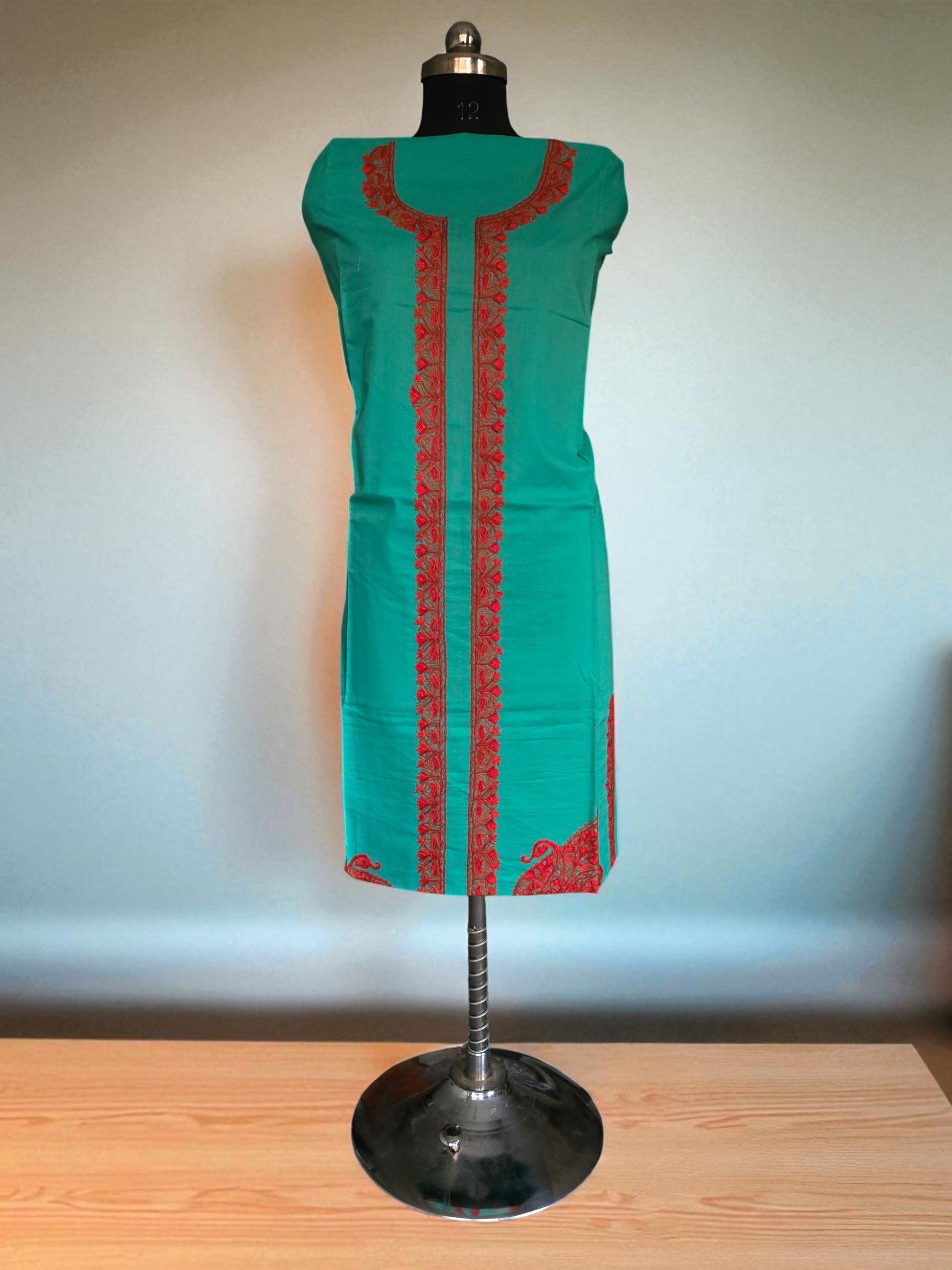 Women Cotton Suits with Hand Kashmiri Embroidery Unstitched Dress Material Salwar Suits -green