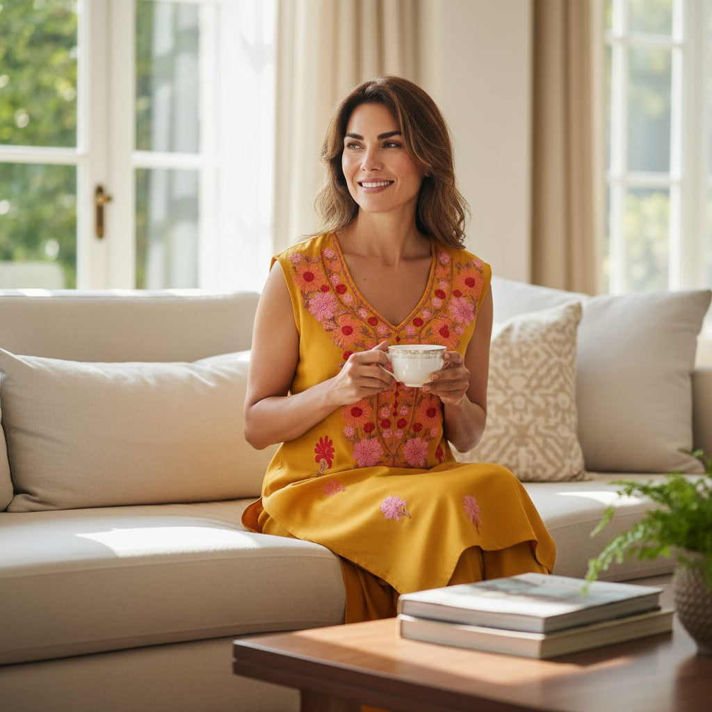 Women Cotton Suits with Kashmiri Embroidery Salwar Suits -Mustard