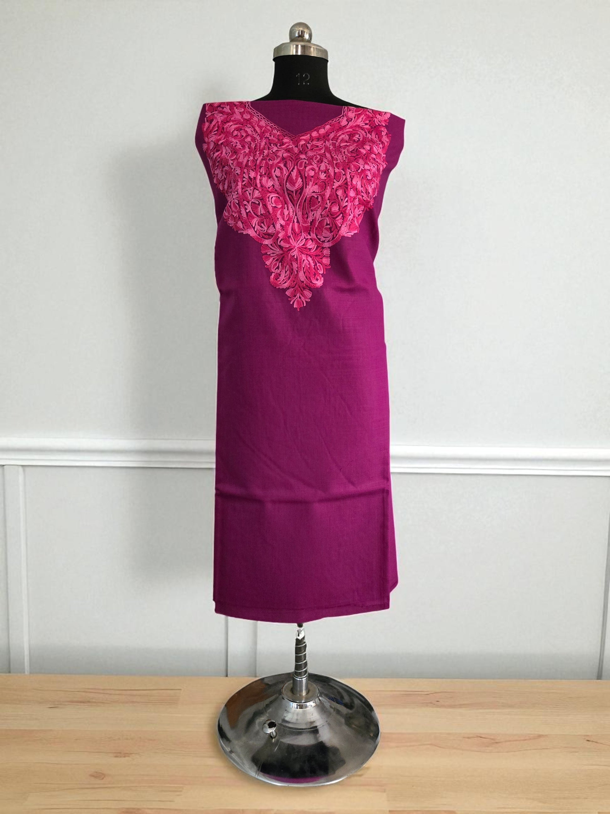 Women Cotton Suits with Kashmiri Embroidery Unstitched Dress Material-Rani Pink