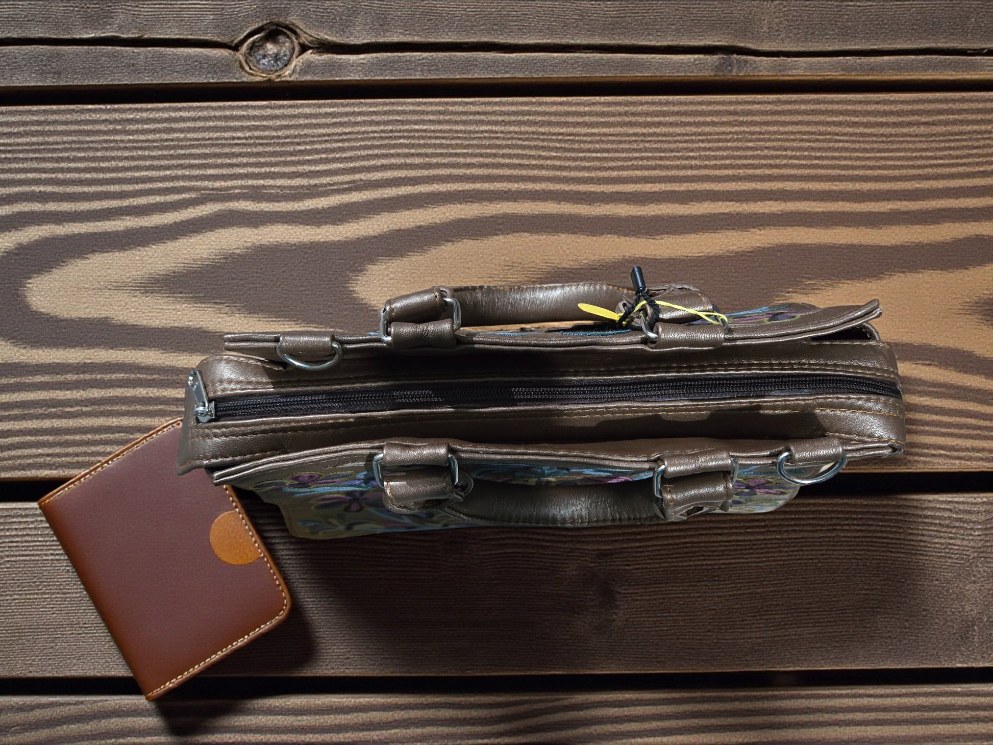 Women Leather Bag With Strap With Gorgeous Kashmiri Embroidery - Dark Grey