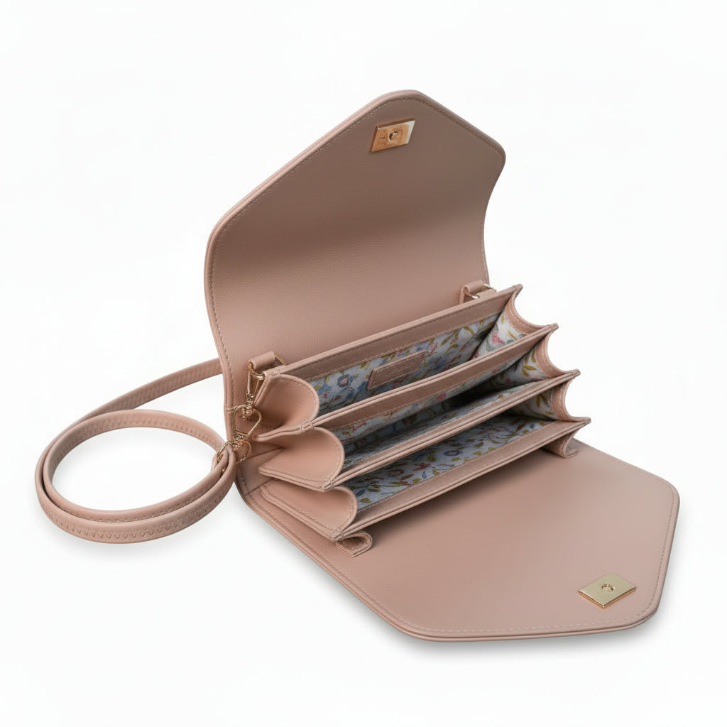 A handcrafted PU leather sling passport bag with traditional Kashmiri embroidery — roomy, refined, and made to age beautifully.