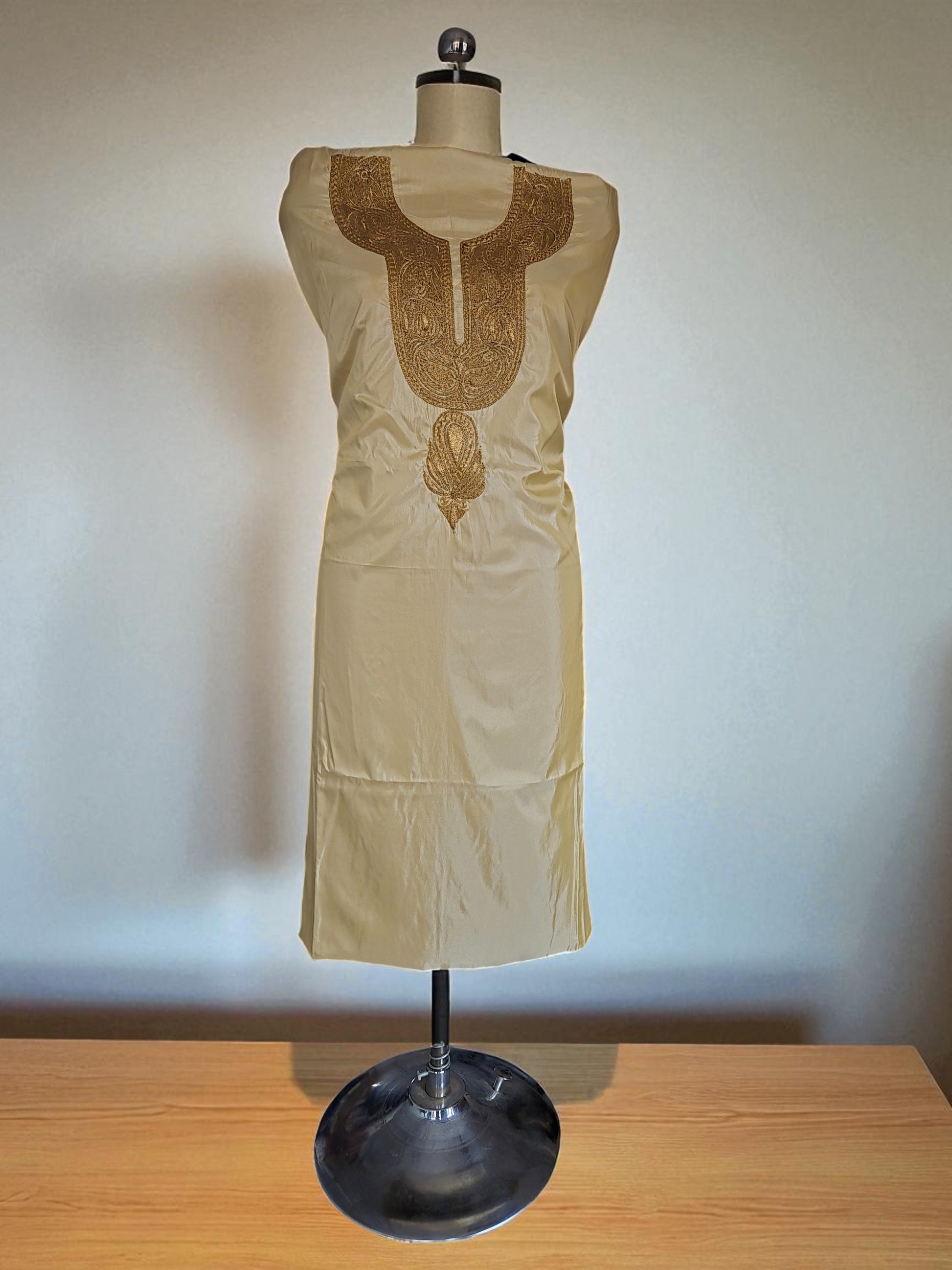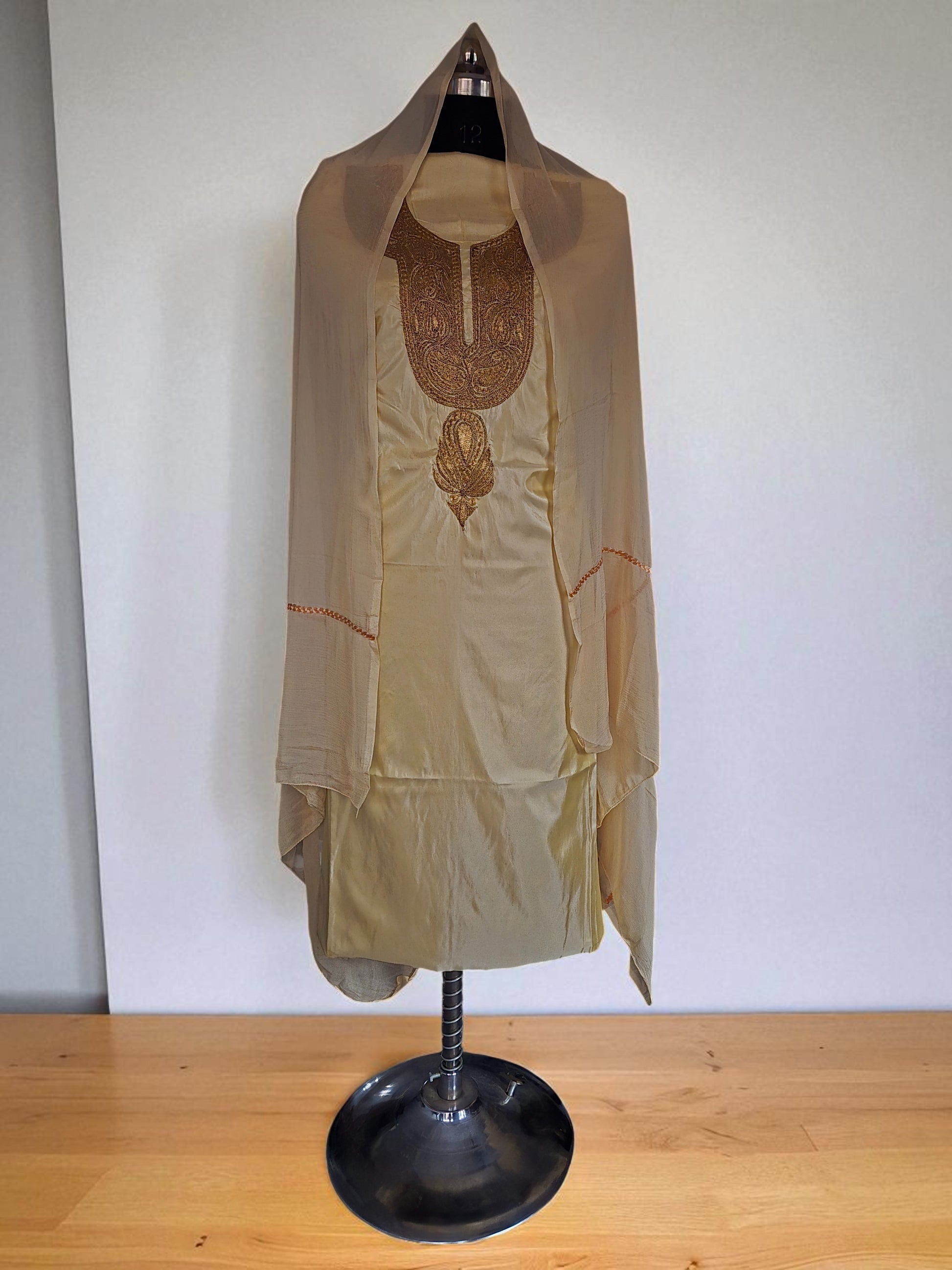 Women Silk Suits with Kashmiri Embroidery Unstitched Dress Material Salwar Suits -beige