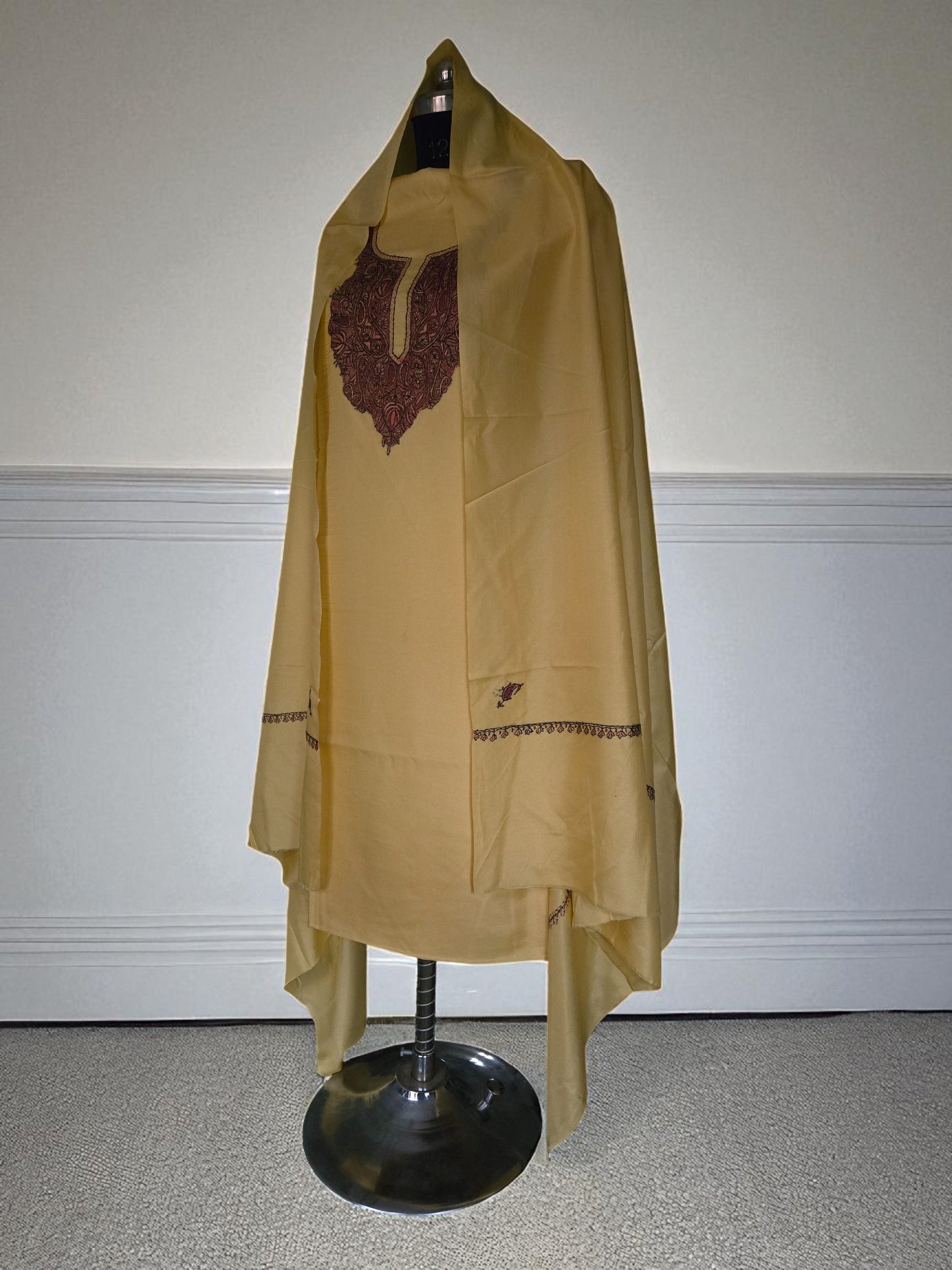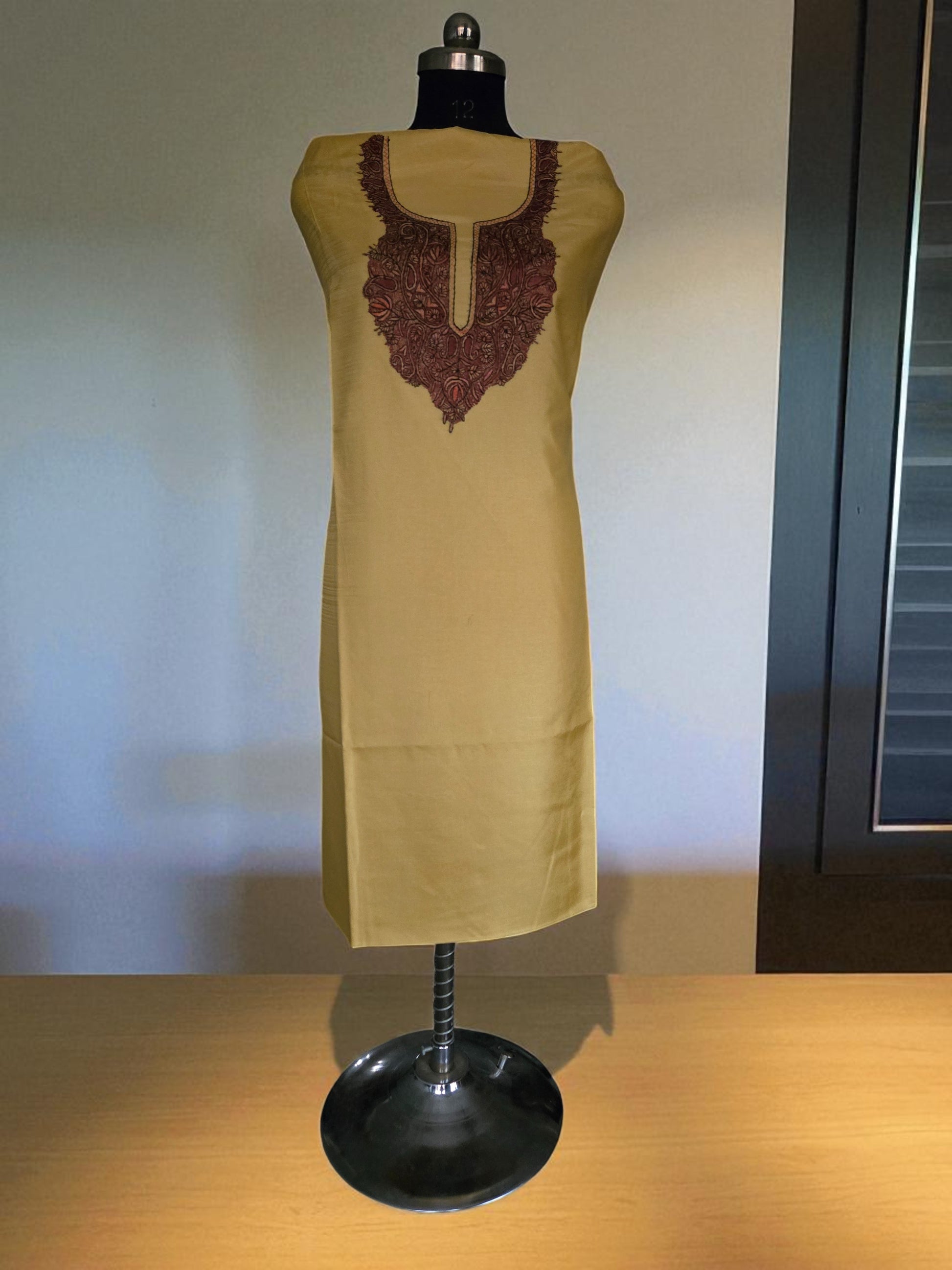 Women Silk Suits with Kashmiri Embroidery Unstitched Dress Material Salwar Suits -beige