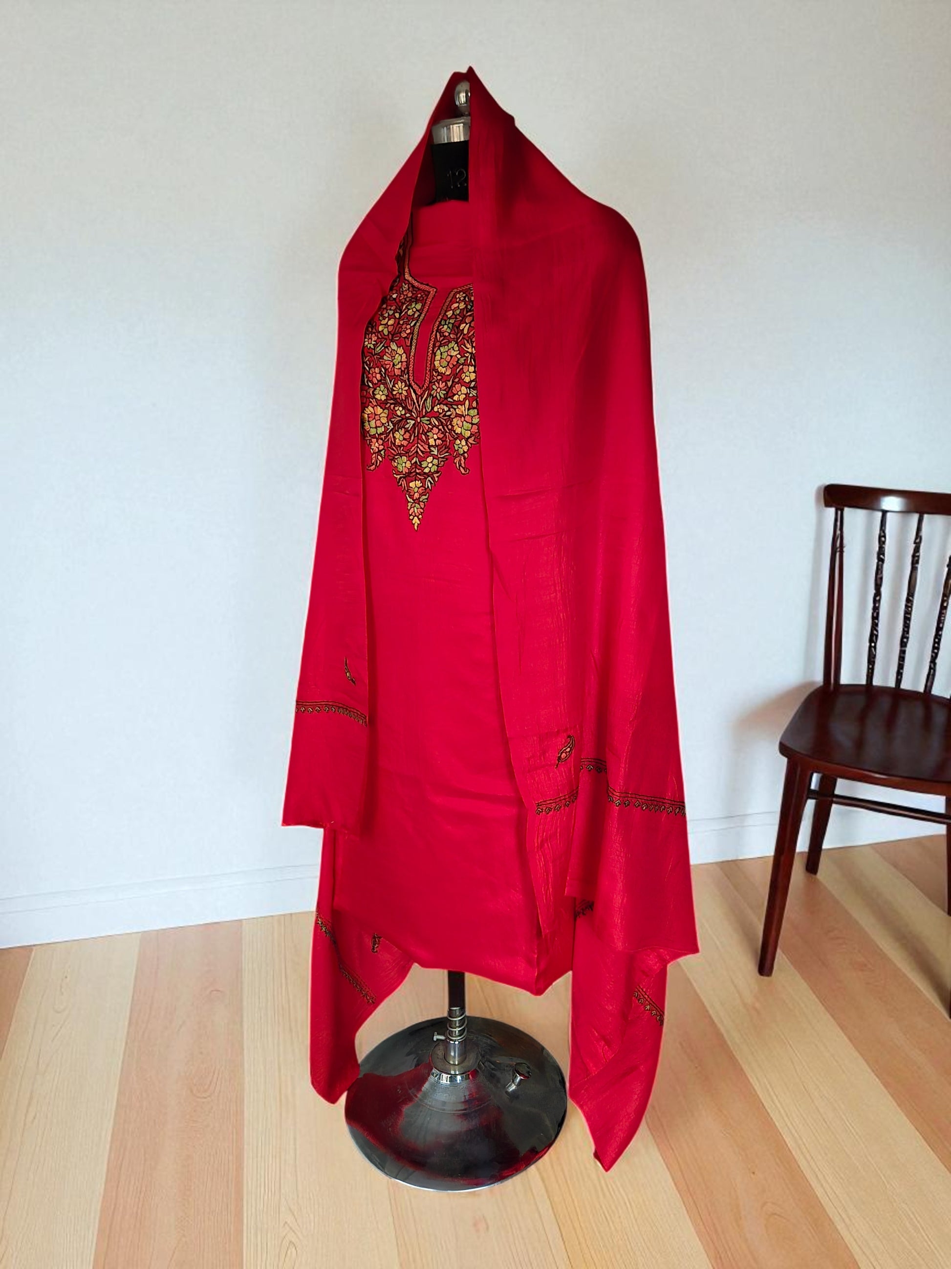 Women Silk Suits with Kashmiri Embroidery Unstitched Dress Material Salwar Suits -red