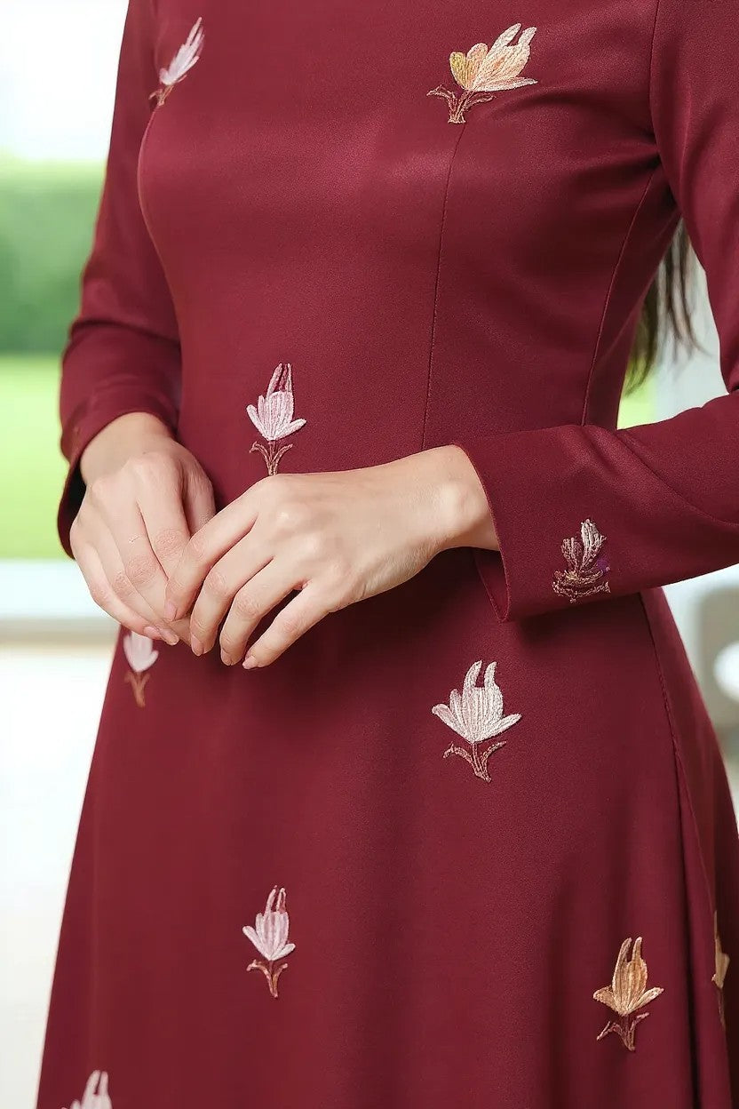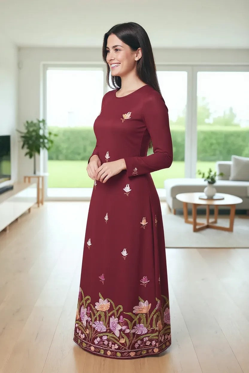 Women Woolen Kashmiri Suits Semi Pashmina- Maroon-4